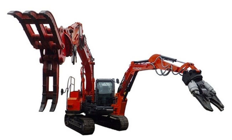 双腕重機とは、その名の通り2本のアームが印象的な重機です。2本のアームがあることで長い物を曲げたり、掴みながら切るなど複雑な作業が可能となります。